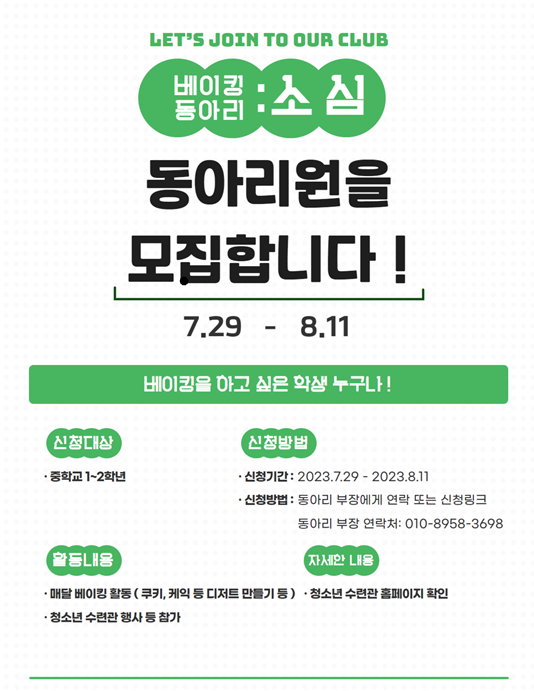 신입 동아리원 대모집!! 베이킹동아리 소심