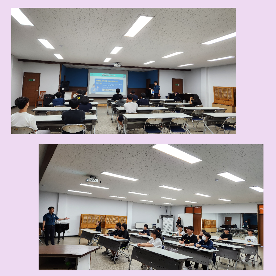 원주경찰서와 연계하여 학교폭력예방교육을 하며 경찰도구 실습도 하였습니다😊