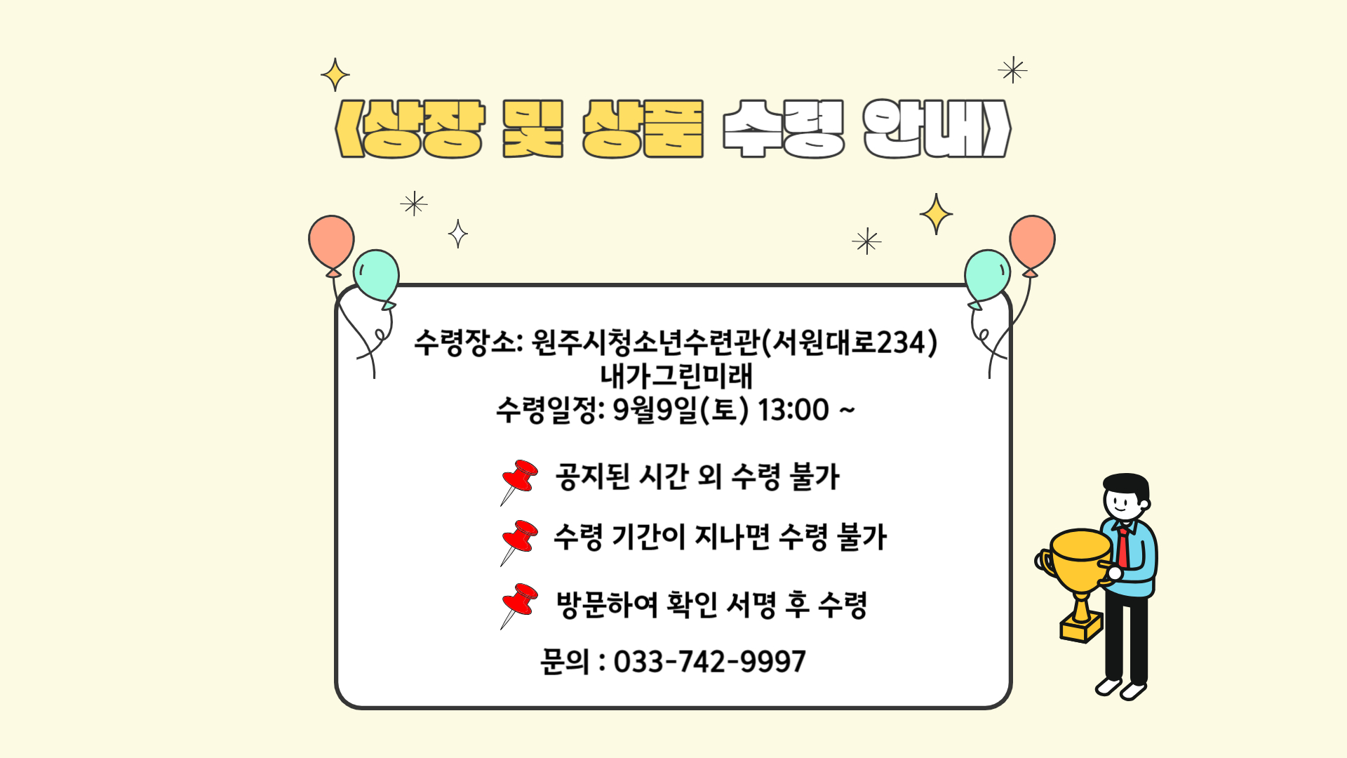 아래 안내문을 참고하시고 상장 및 부상을 꼭 수령하기 바랍니다.