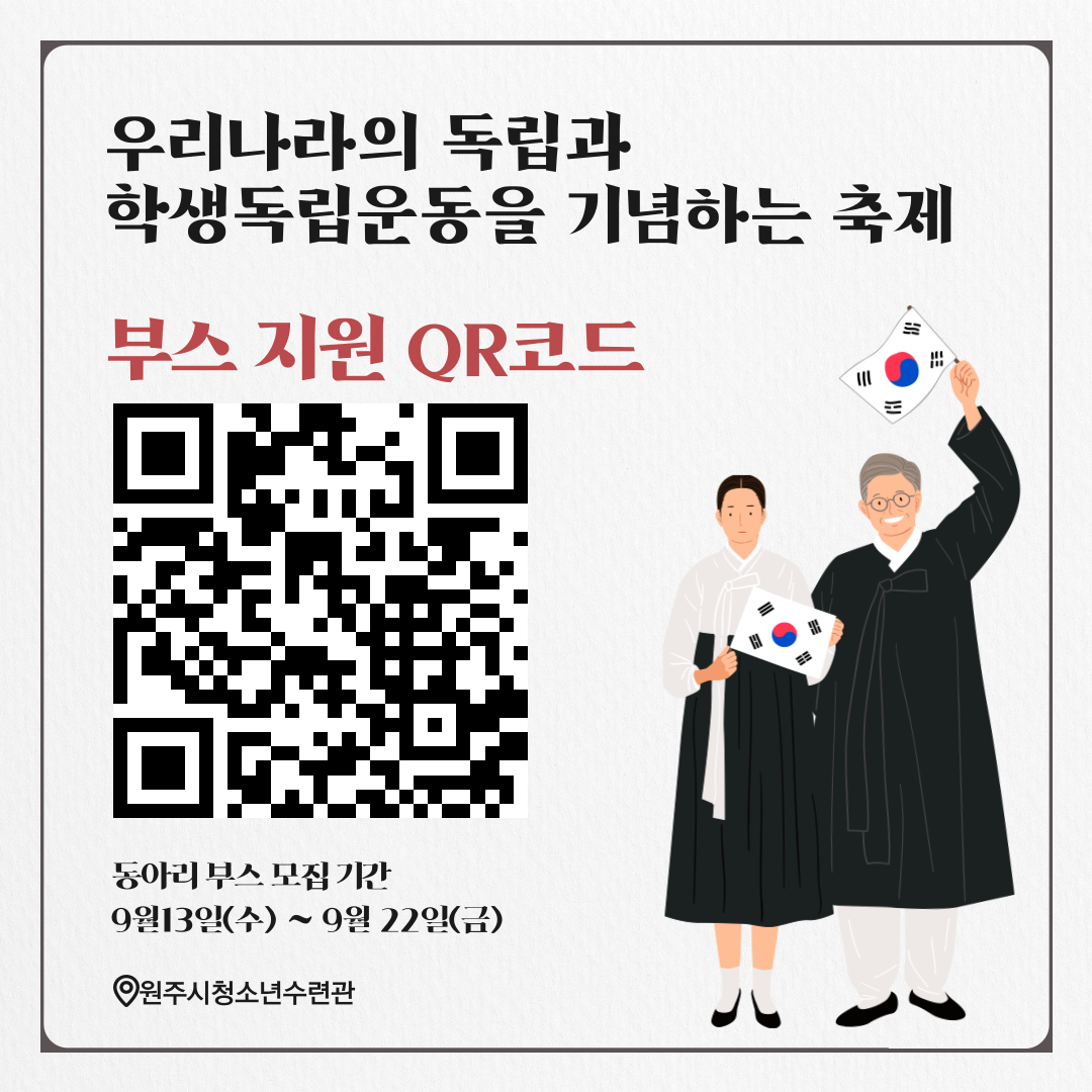 2023년 제8회 강원학생의날축제 부스 신청폼입니다. 강원학생의날 축제는 학생독립운동기념일을 기념하는 축제로, 축제의 취지를 위해 역사 및 독립과 관련된 부스운영을 독려하고 있습니다. 그