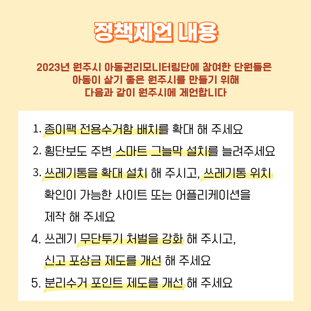 ✨내 용 : 아동권리 주체인 아동, 청소년이 자신과 타인의 권리와 그 중요성을 알아보고 이를 기반으로 다양한 활동을 통해 지역사회에 필요한 정책들을 고민하여 제언함
