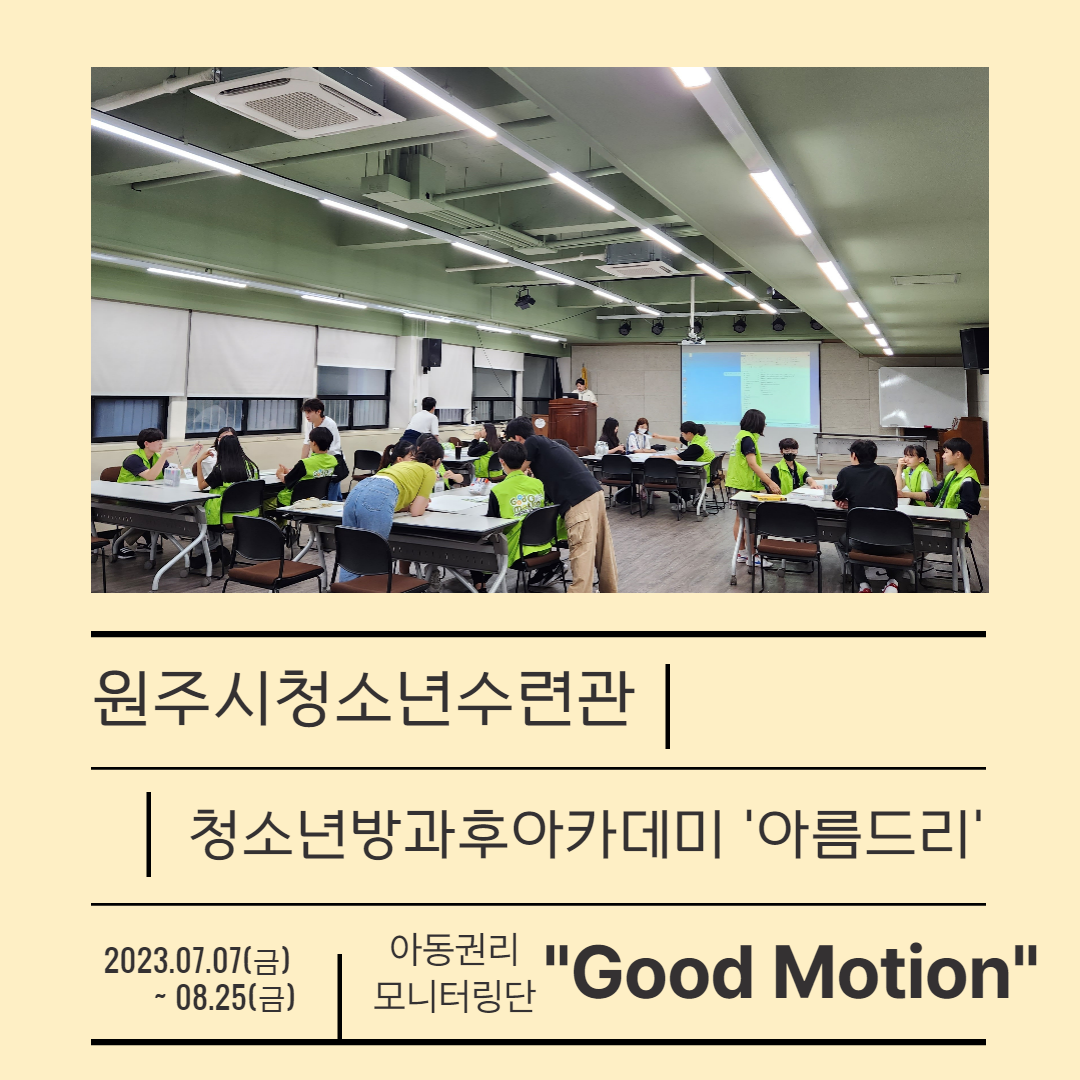 굿네이버스 강원서부지부와 연계하여 아동권리모니터링단 "Good Motion"을 진행했습니다😊