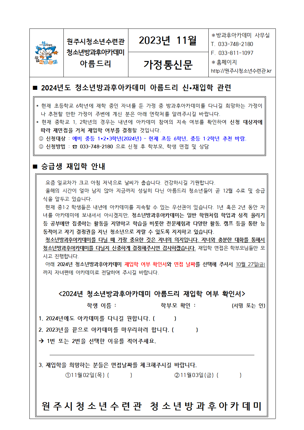 방과후아카데미/아름드리 소식