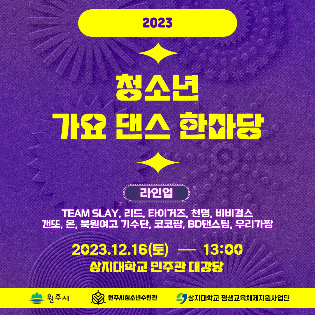 16일(토) 오후 1시, 상지대학교 민주관 3층 대강당에서 만나요!