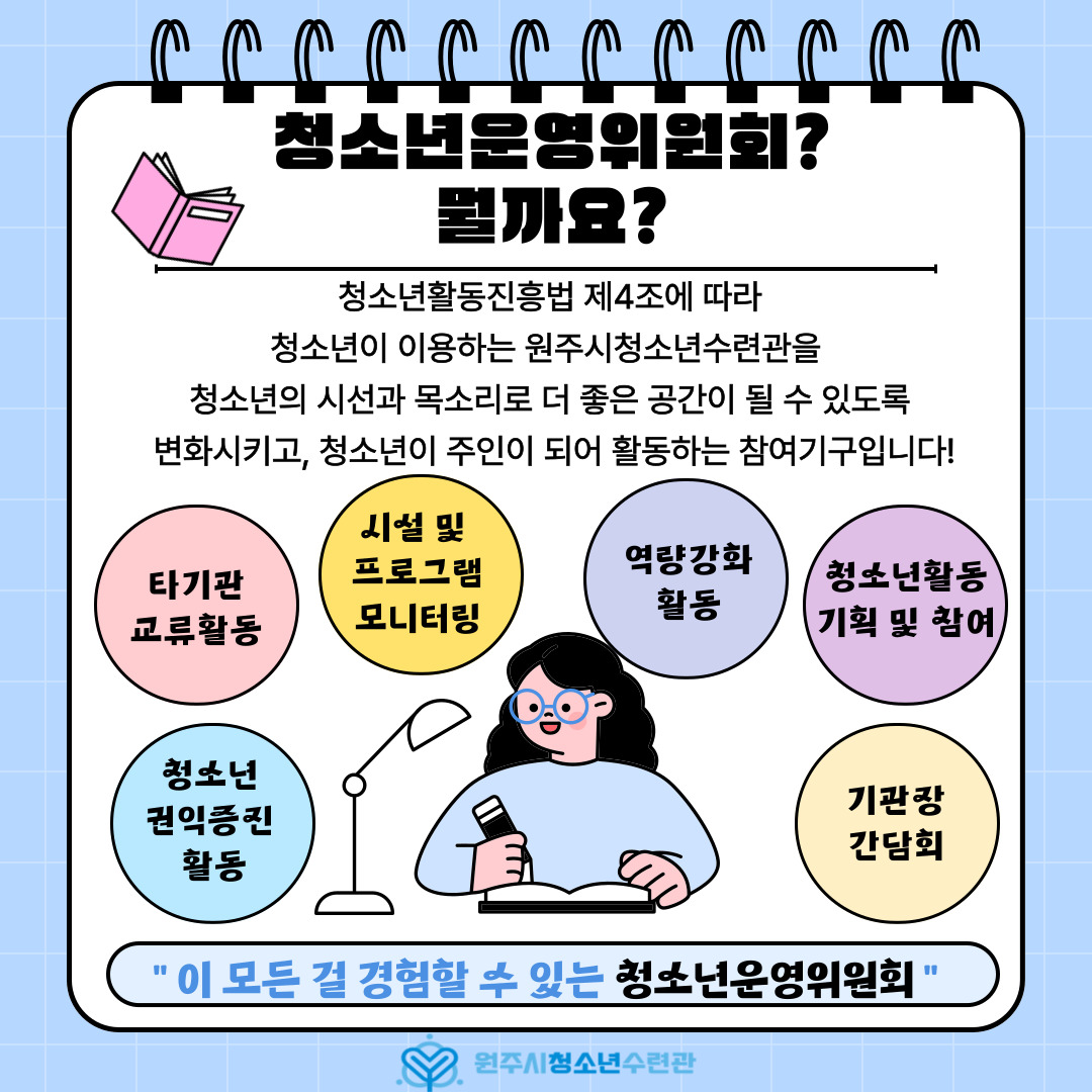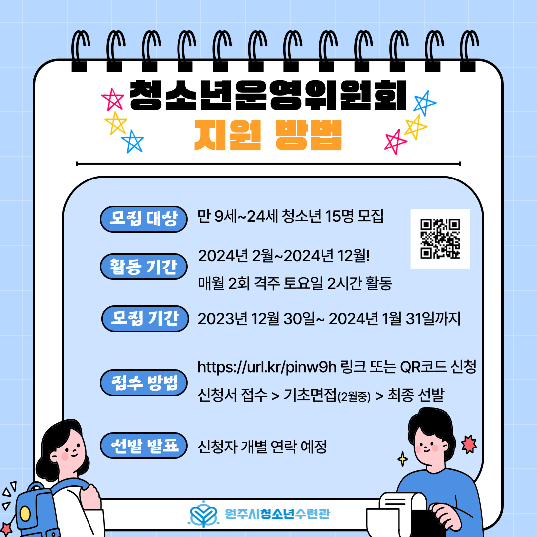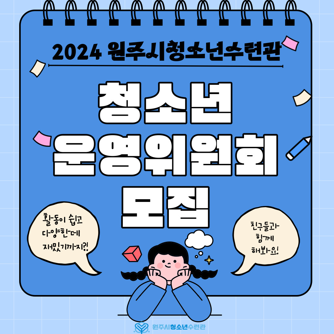 원주시청소년수련관에서 2024 청소년운영위원회 위원을 모집합니다!