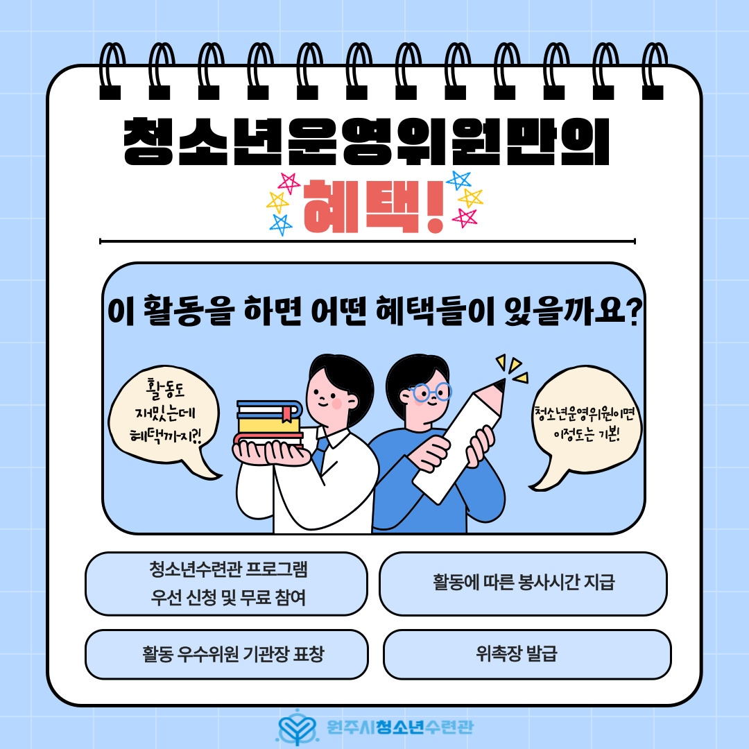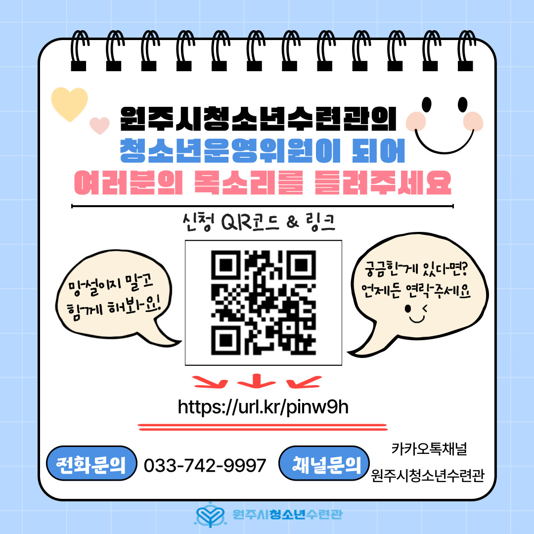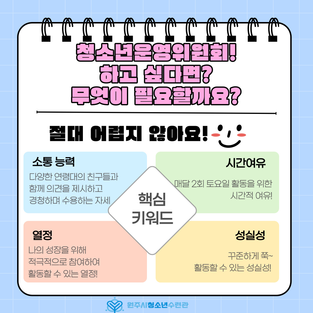 원주시청소년수련관에서 2024 청소년운영위원회 위원을 모집합니다!