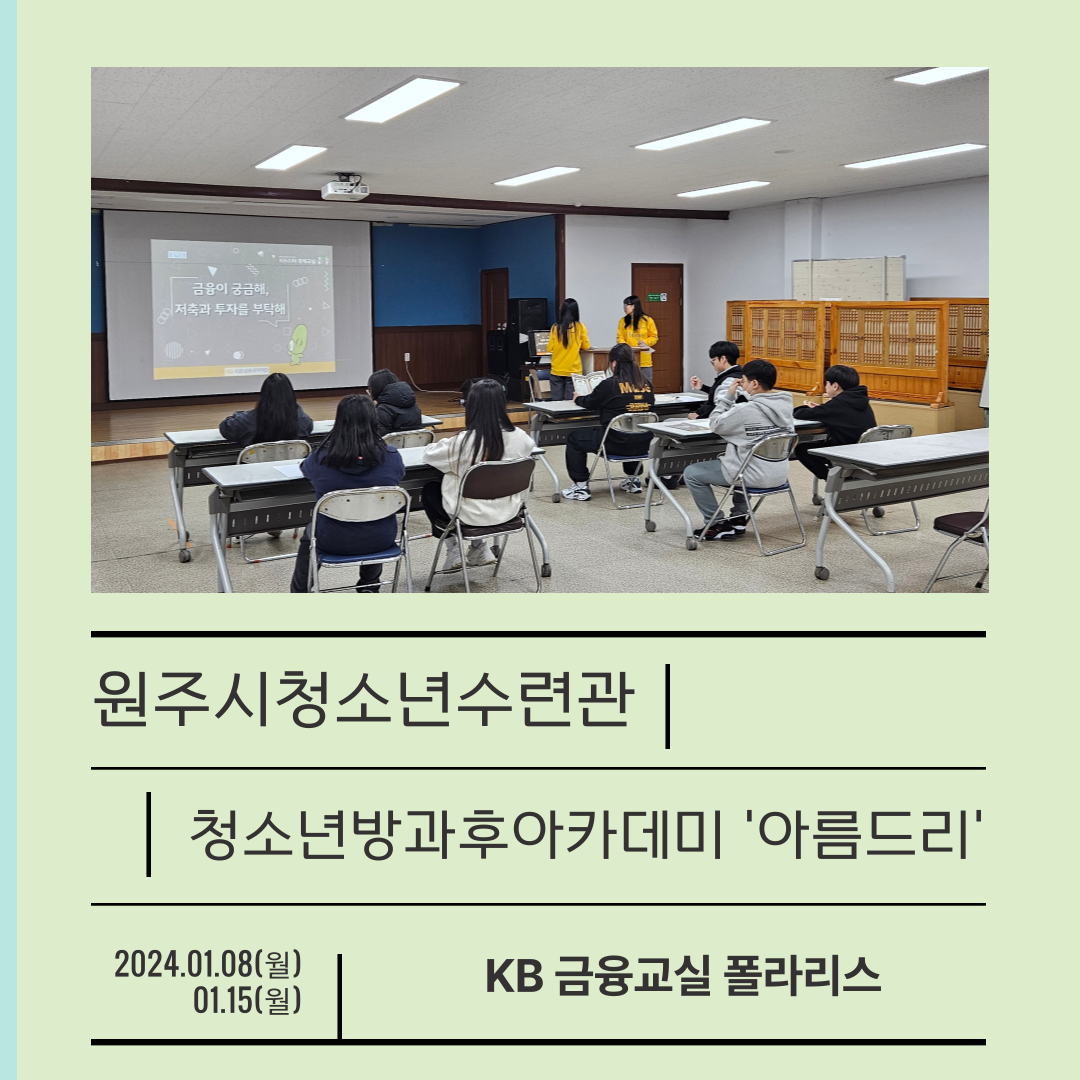 1월 8일(월), 15일(월)에 거쳐 KB금융 찾아가는 경제교실 폴라리스 수업이 진행되었습니다.