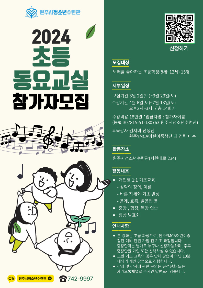 2024 초등 동요교실 참가자 모집(~3월23일까지)