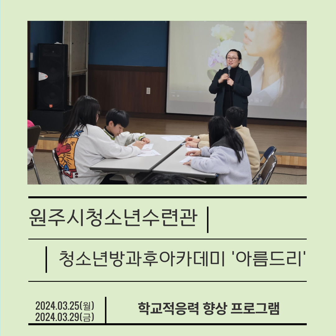 원주시청소년수련관 방과후아카데미 아름드리에서 함께 할 청소년을 모집합니다!